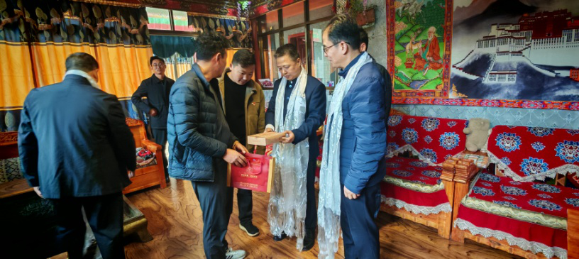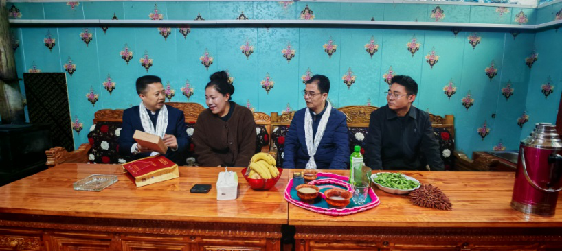 考察团一行随即前往山南市隆子县调研,与隆子县委书记李宁、县委常委、统战部部长嘎玛旦增等领导进行了会谈。赵颖君一行在县委常委、统战部部长嘎玛旦增、副部长索朗巴珠的陪同下,翻越了三座海拔超5000米山峰,深入隆子县斗玉珞巴民族乡、玉麦乡、扎日镇等乡镇及村,不仅学习了蔵区同胞的爱国主义思想、情怀与精神,而且考察了茶叶加工厂、了解藏区本地小众茶的生产、区内区外茶消费情况等,与此同时,还走进藏民同胞家中,代表益阳市委统战部赠送“湘益”茯茶、表达了益阳人民的热情厚爱与对藏区人民的美好祝福。